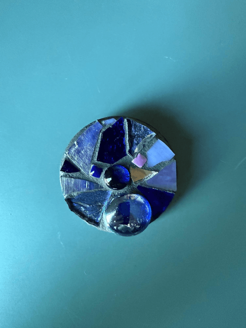 I can’t resist tapping into my jewellery-maker roots with these pretty brooches. All the off-cuts of glass are collected from my mosaic work over the week and I then create these miniature mosaics to wear. They look beautiful on a sweater, scarf or coat lapel catching the light.