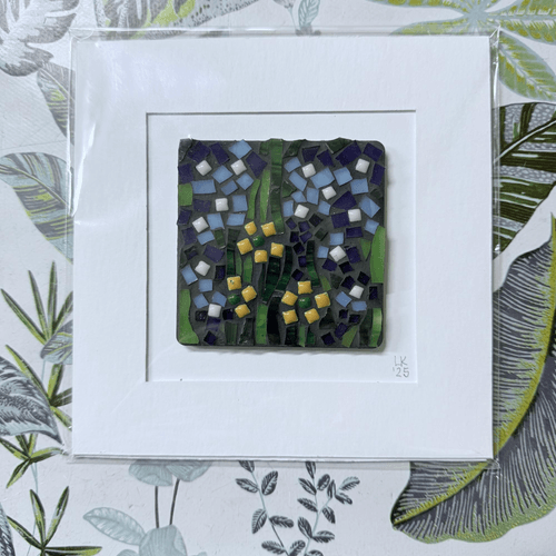 One of a series of small 3in mosaic sketches. Inspired by the Shropshire landscape and seascapes of the North Wales coast. Each is individual as created from studio fragments collected each week. Like the landscapes, ever changing.