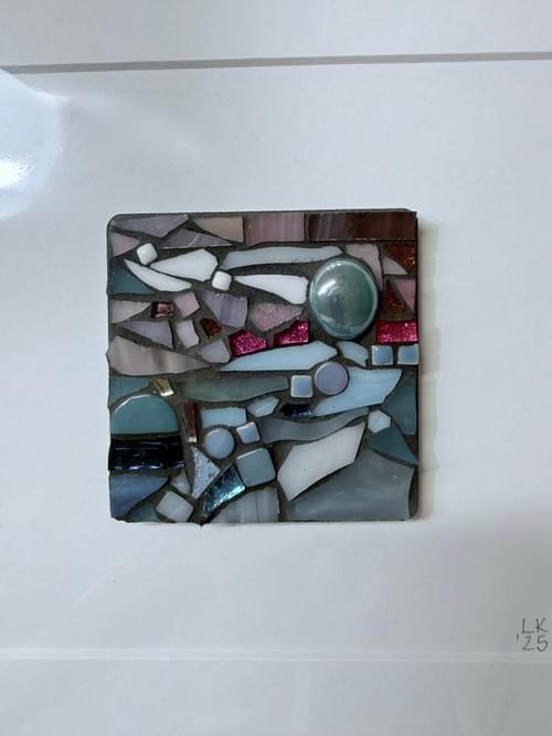 One of a series of small 3in mosaic sketches. Inspired by the Shropshire landscape and seascapes of the North Wales coast. Each is individual as created from studio fragments collected each week. Like the landscapes, ever changing.