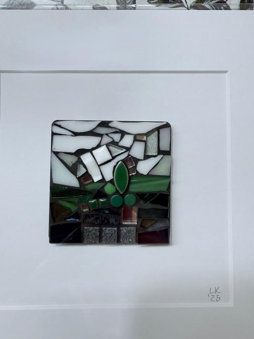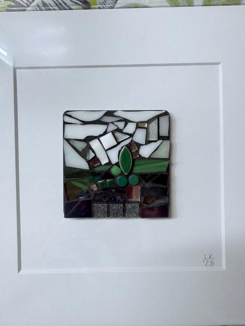 One of a series of small 3in mosaic sketches. Inspired by the Shropshire landscape and seascapes of the North Wales coast. Each is individual as created from studio fragments collected each week. Like the landscapes, ever changing.