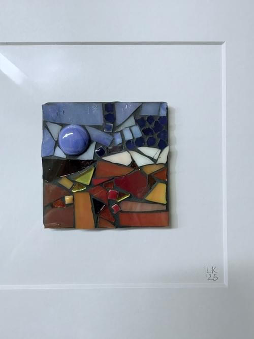 One of a series of small 3in mosaic sketches. Inspired by the Shropshire landscape and seascapes of the North Wales coast. Each is individual as created from studio fragments collected each week. Like the landscapes, ever changing.