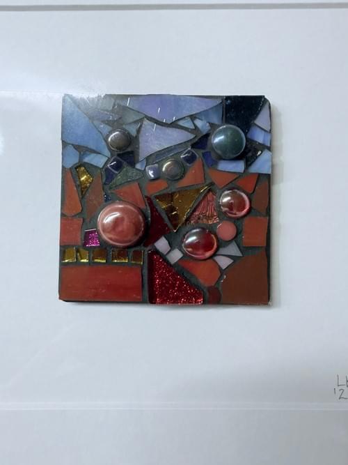 One of a series of small 3in mosaic sketches. Inspired by the Shropshire landscape and seascapes of the North Wales coast. Each is individual as created from studio fragments collected each week. Like the landscapes, ever changing.