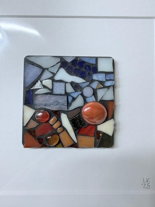 One of a series of small 3in mosaic sketches. Inspired by the Shropshire landscape and seascapes of the North Wales coast. Each is individual as created from studio fragments collected each week. Like the landscapes, ever changing.