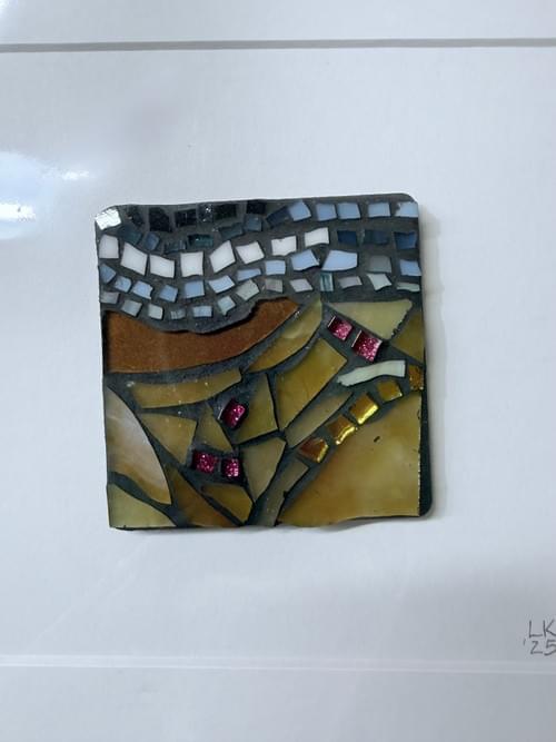 One of a series of small 3in mosaic sketches. Inspired by the Shropshire landscape and seascapes of the North Wales coast. Each is individual as created from studio fragments collected each week. Like the landscapes, ever changing.