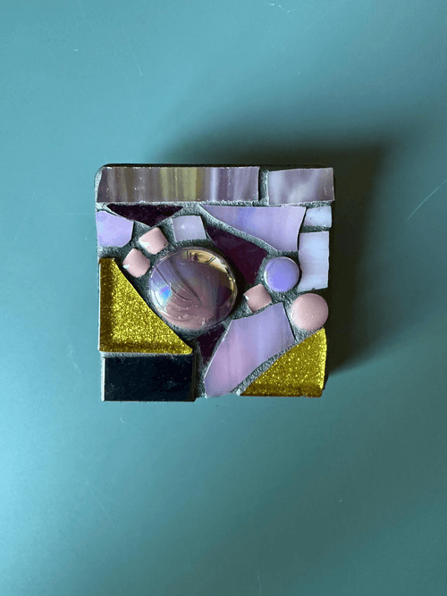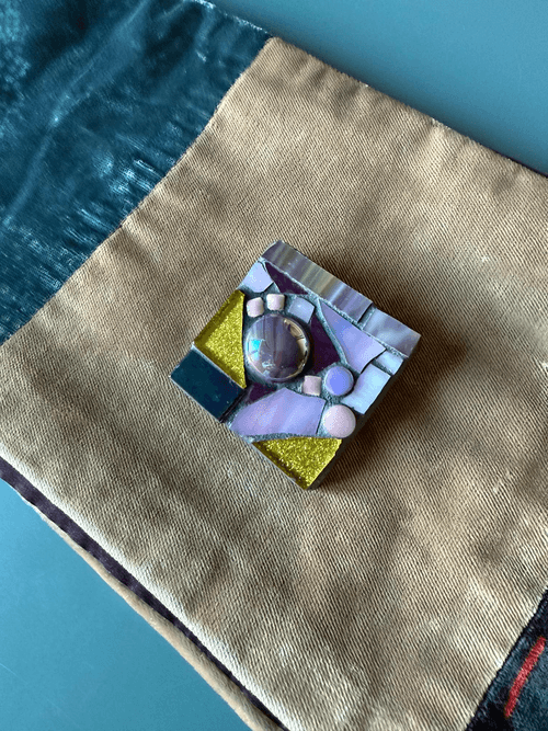 I can’t resist tapping into my jewellery-maker roots with these pretty brooches. All the off-cuts of glass are collected from my mosaic work over the week and I then create these miniature mosaics to wear. They look beautiful on a sweater, scarf or coat lapel catching the light.