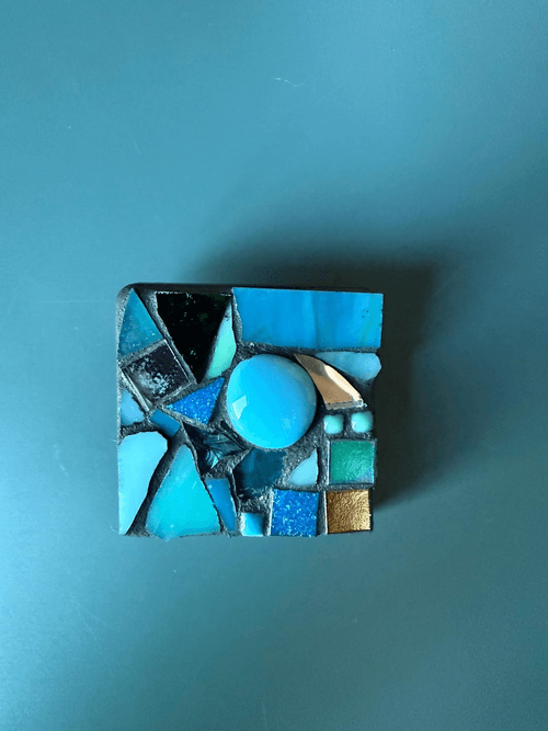 I can’t resist tapping into my jewellery-maker roots with these pretty brooches. All the off-cuts of glass are collected from my mosaic work over the week and I then create these miniature mosaics to wear. They look beautiful on a sweater, scarf or coat lapel catching the light.
